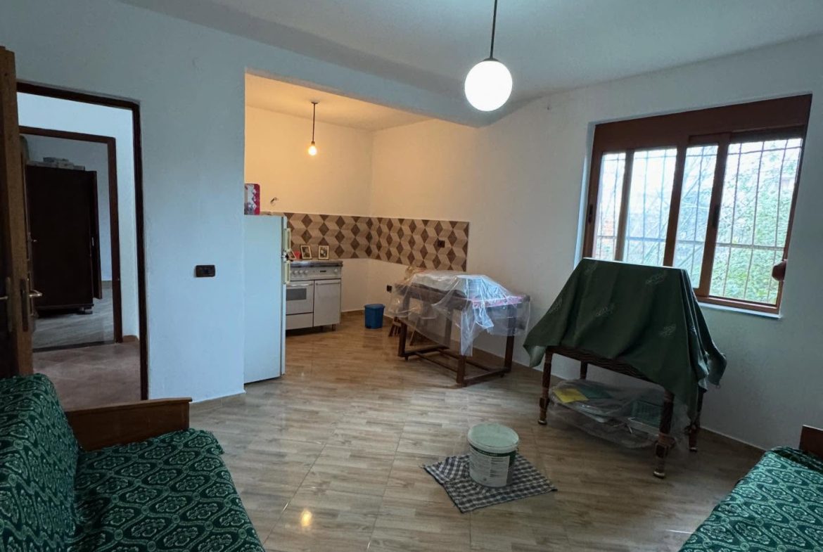 Shtepia ndodhet ne nje zone te qete shum prane rruges kryesore.Me oborr te gjelberuar dhe hapsire per parkimin e makines.