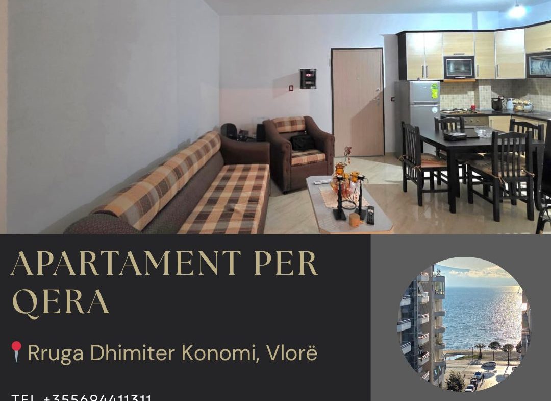 🌊 EKSKLUZIV – Apartament 1+1 me qira afatgjatë | Pamje nga deti 📍 Rruga Reshat Osmani, Vlorë | 💶 420 €/muaj | Kati 6 | Ashensor