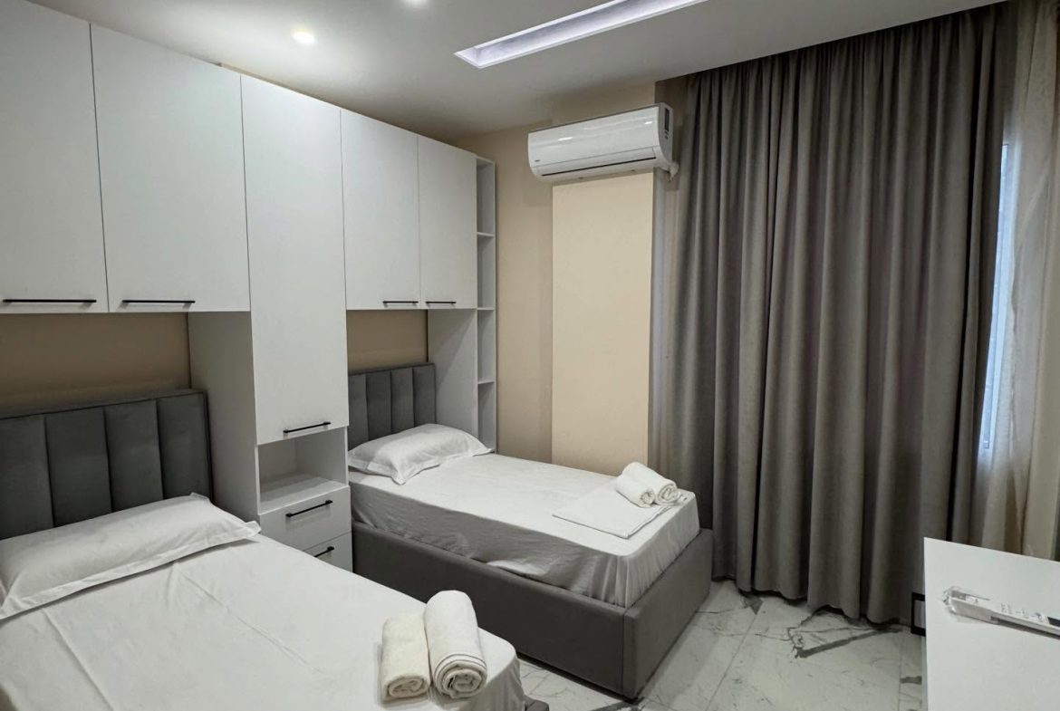 Pallati eshte ndertim i ri,i ndertuar me standart te larte.Apartamenti eshte totalisht i arreduar me stil modern,me punime teje cilesore dhe i pabanuar me pare.