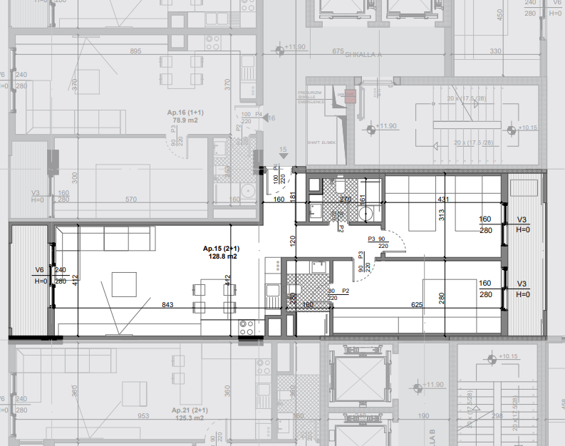 - Siperfaqe totale: 128.8 m2.