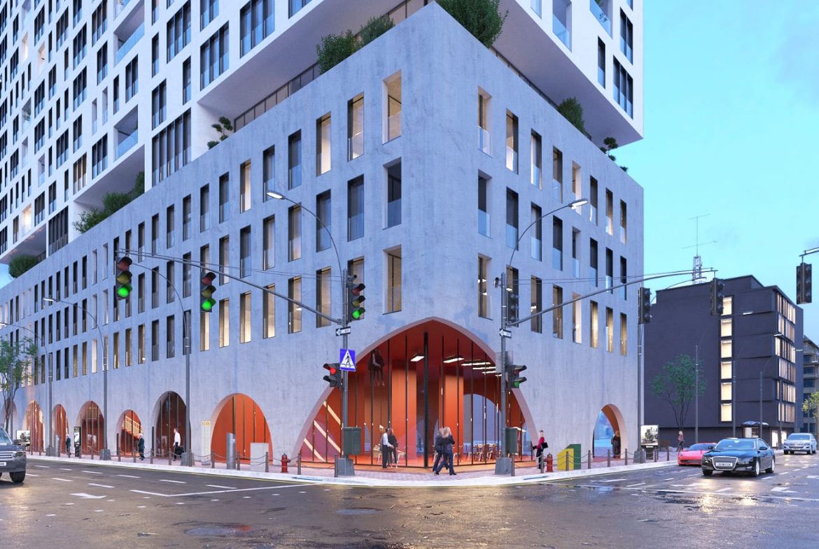 • Objekti, në 2 katet e para zhvillohet me ambjente shërbimi në formën e zyrave dhe ambjenteve tregtare.