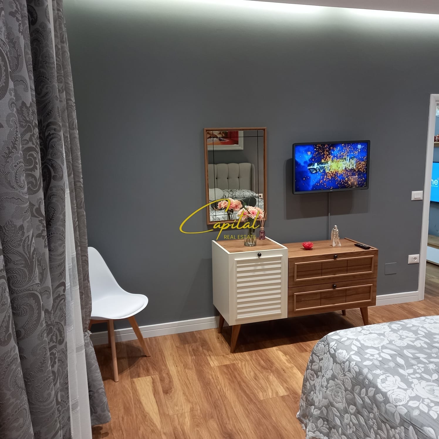 . Apartamenti ofrohet i mobiluar totalisht si ne foto.