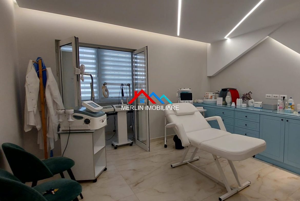 Jepet Ambjent Biznesi me qera (klinikë estetike), vetëm pak hapa nga qendra e Tiranës. Ndodhet në katin përdhe dhe ka një sipërfaqe prej 70 m².