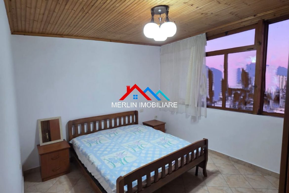 Jepet Apartament 1+1 me qera ne Don Bosko,rruga Muzaket. Apartamenti ka nje siperfaqe 75m2 dhe ndodhet ne katin e 11 te nje pallati te ri me ashensor. Apartamenti eshte totalisht i mobiluar dhe eshte i perbere nga nje dhome gjumi,nje ambjent ndenje bashke me ambjentin e gatimit,nje tualet e nje ballkon. Ai eshte i pajisur me kondicioner.