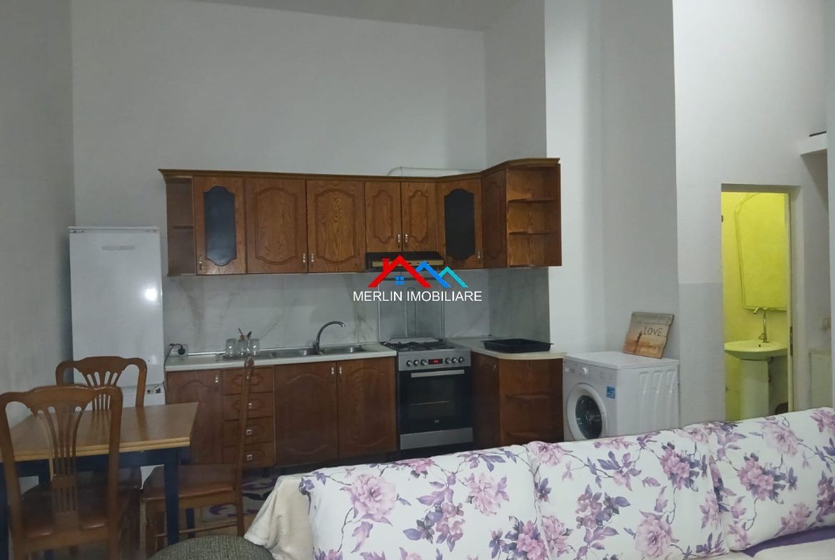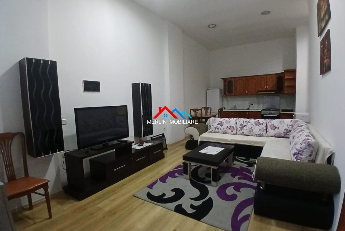Jepet Apartament 1+1 me qera ne Fresk, ne rrugen Shefqet Kuka. Apartamenti ka nje siperfaqje 50m2 dhe ndodhet ne katin e 1 mbi dyqane te nje pallati te ri me ashensor. Apartamenti eshte i mobiluar totalisht dhe eshte i perbere nga nje dhome gjumi, nje ambjent ndenje, nje ambjent gatimi nje tualet e nje ballkon.