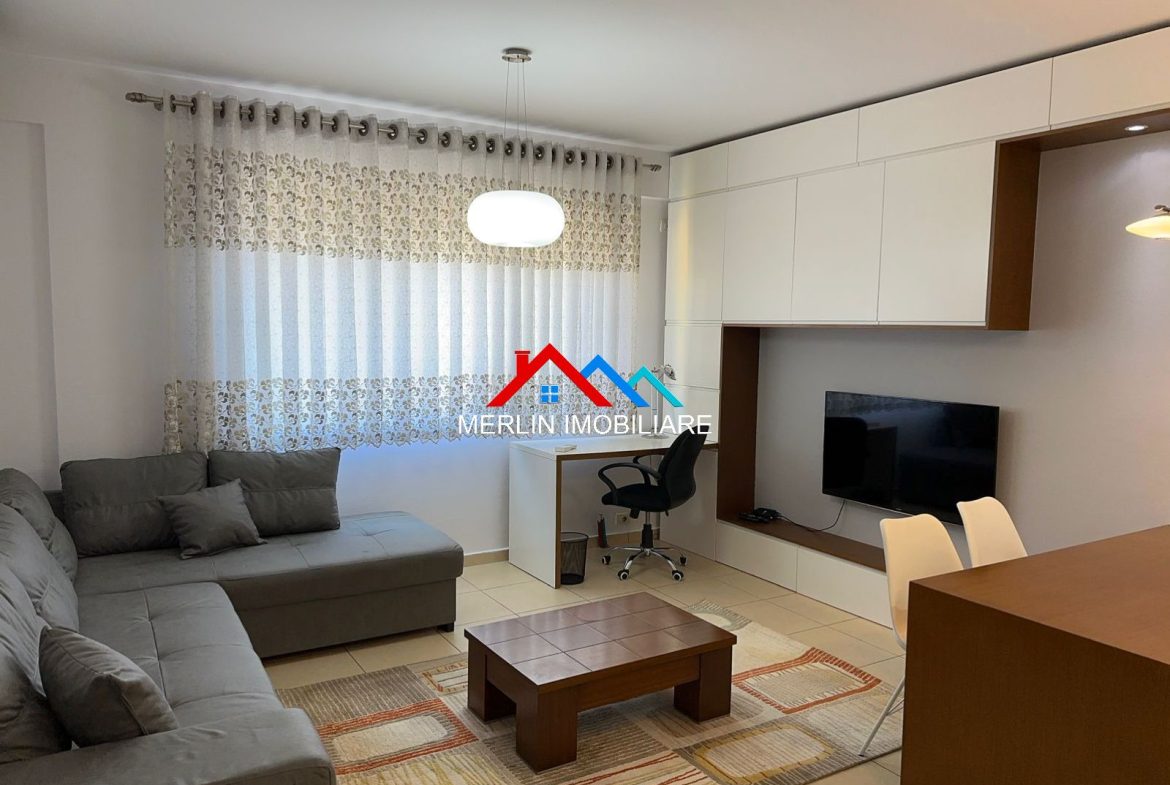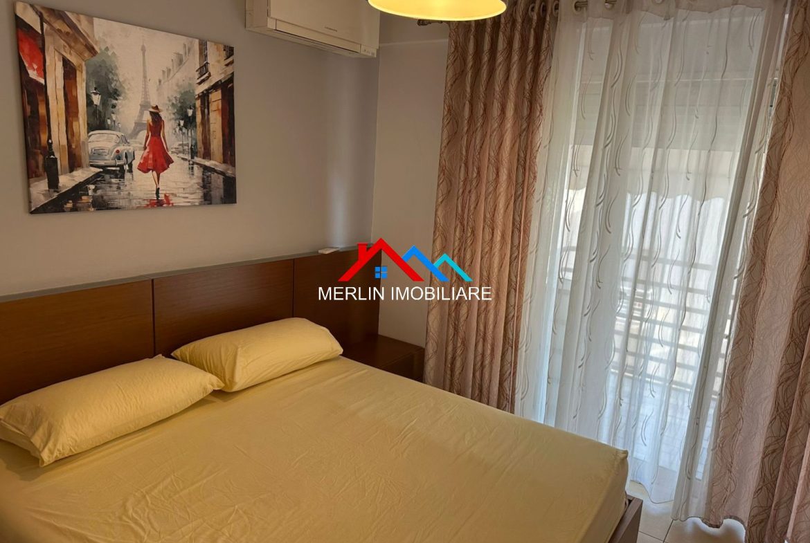 Jepet apartament 1+1 me qera tek 5 Maji ne rrugen Abdyl Pajo. Apartamenti ka nje siperfaqe 70m2 dhe ndodhet ne katin e 4 te nje pallati te ri me ashensor. Apartamenti eshte i mobiluar dhe i pajisur me kondicioner. Ai eshte i perbere nga nje dhome gjumi, nje ambjent ndenje, nje ambjent gatimi, nje tualet e nje ballkon.