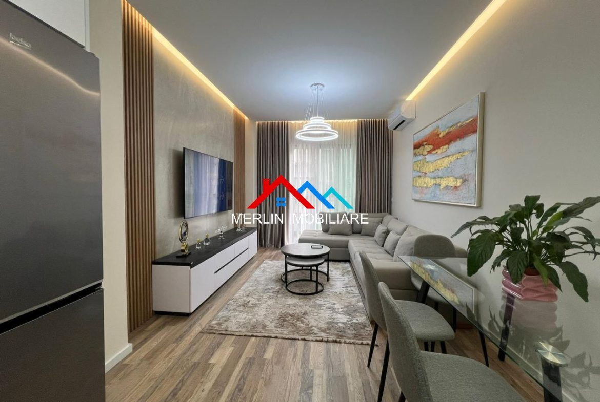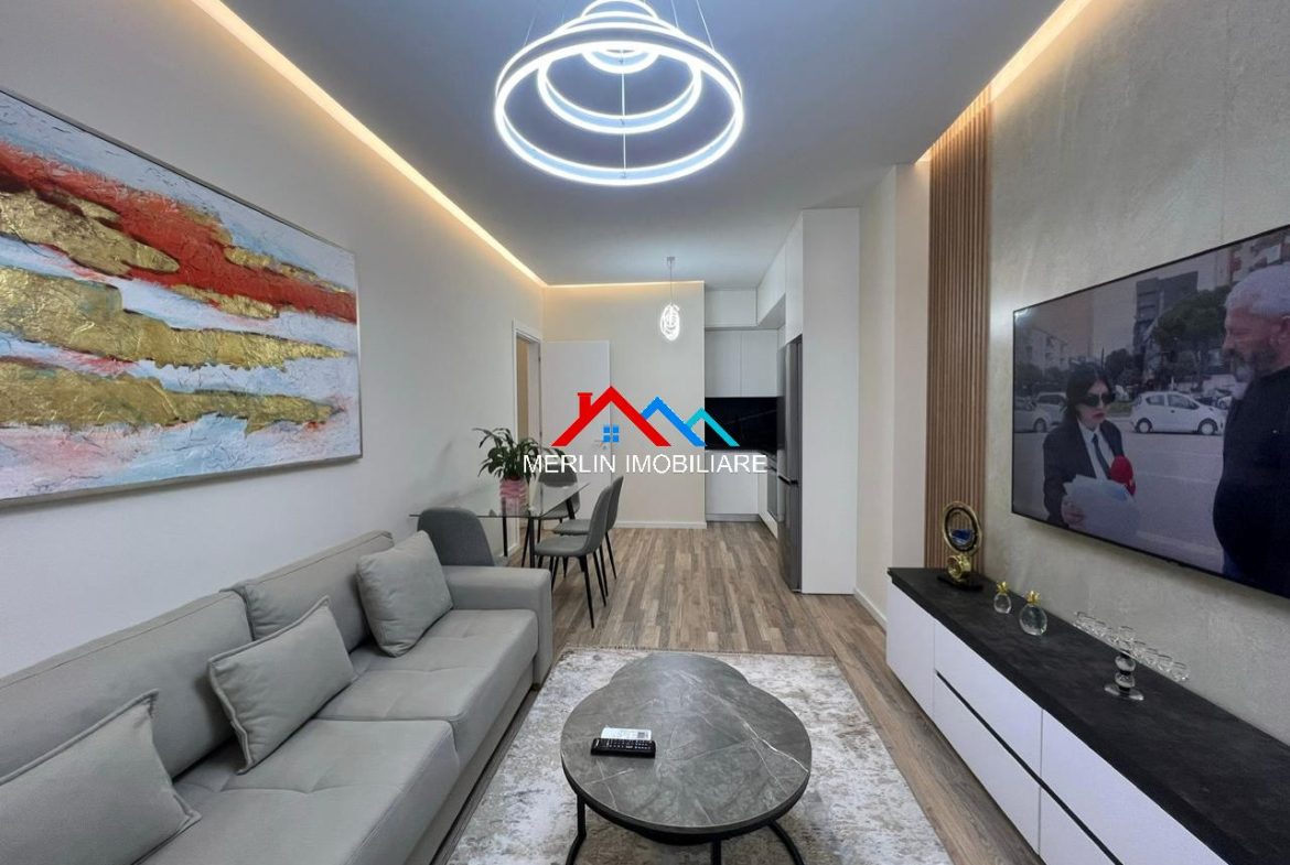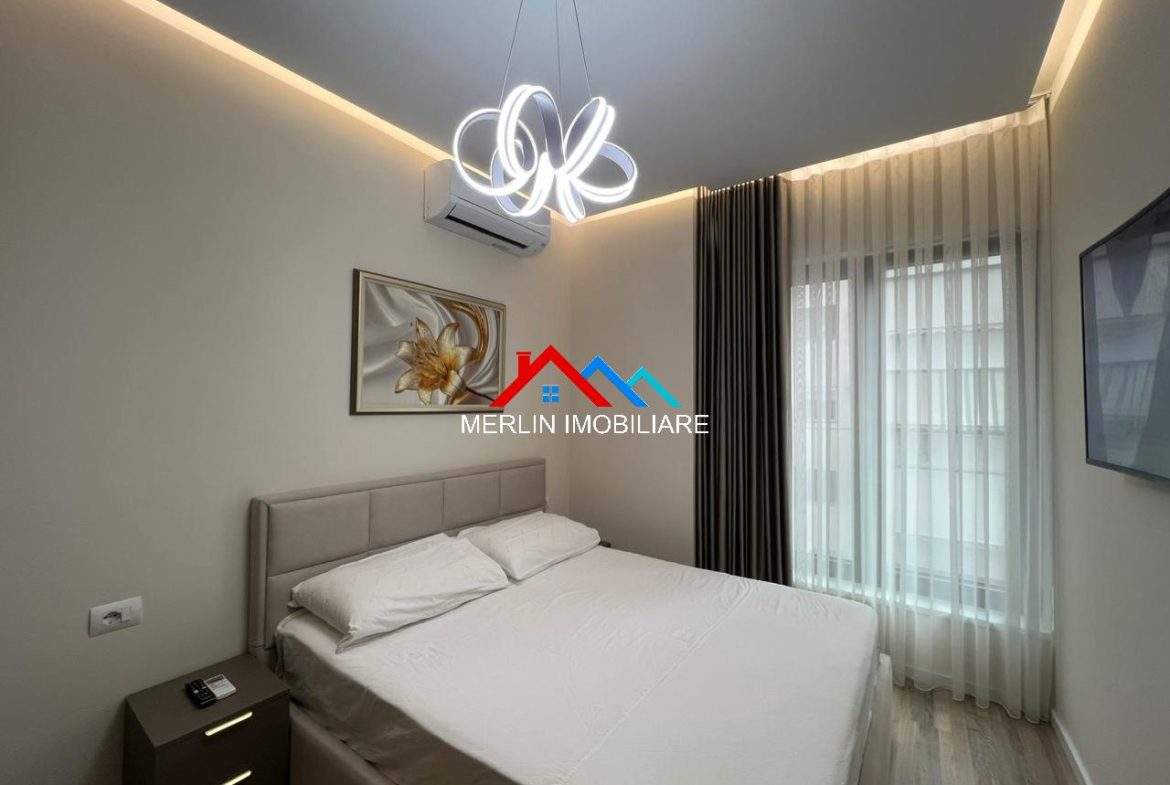 Eshtë totalisht i mobiluar dhe ndodhet në katin e 4 te nje pallati te ri me ashensor duke ofruar kushte shume te mira banimi.