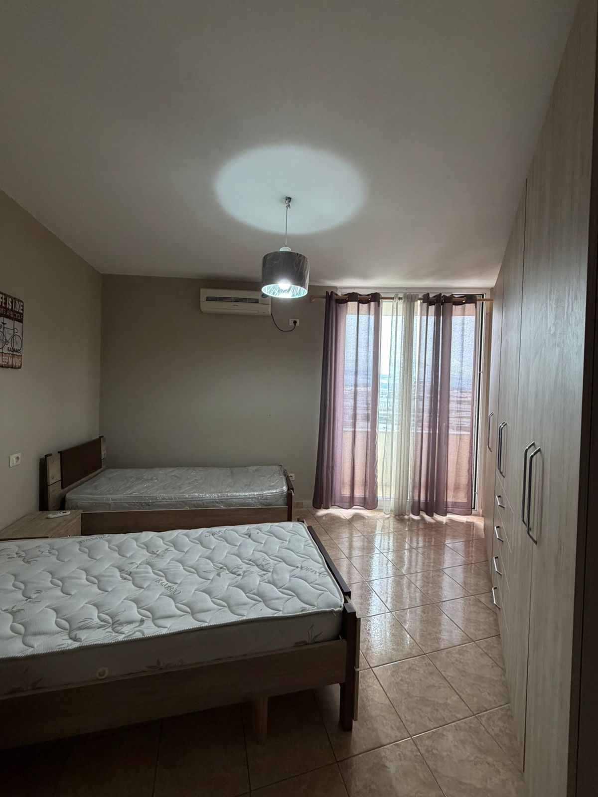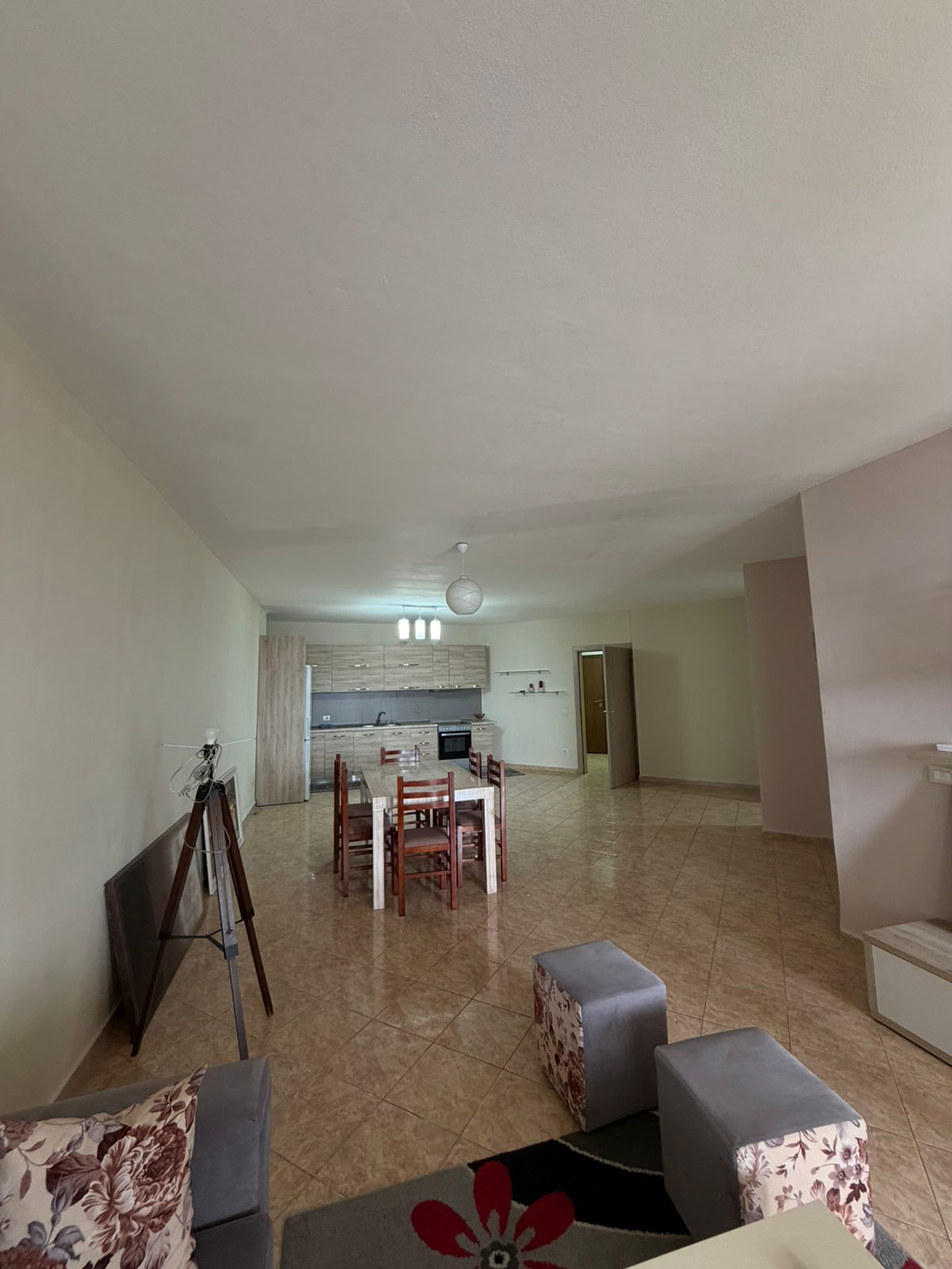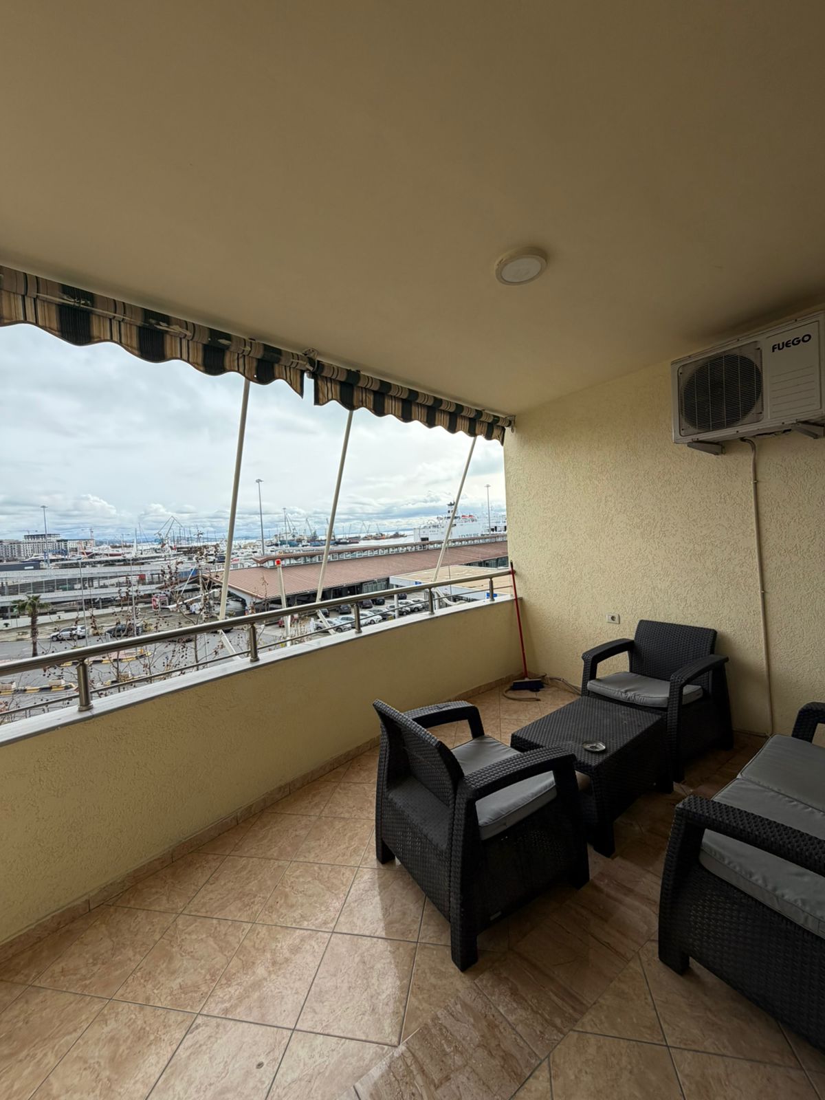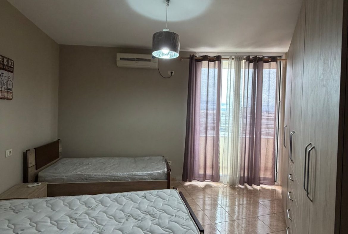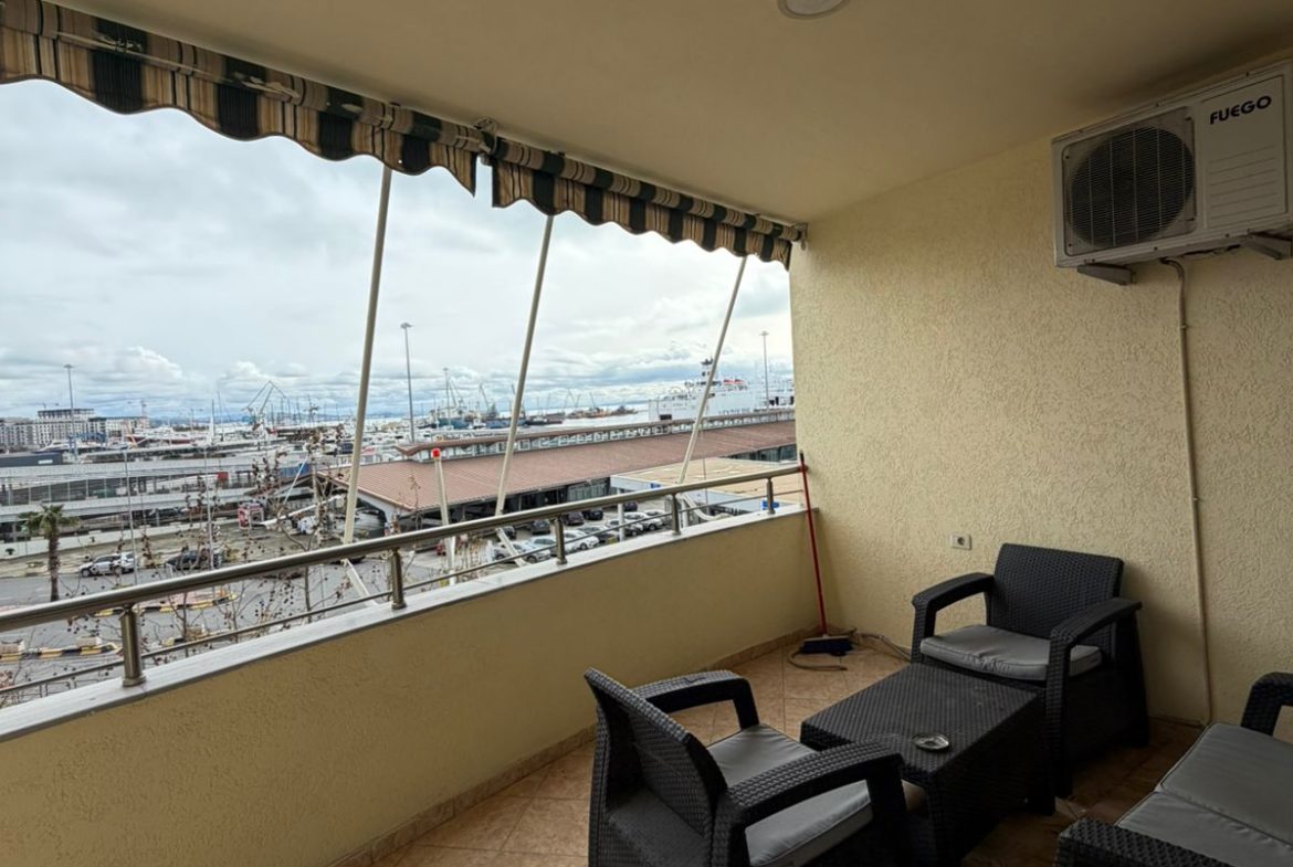 Apartamenti organizohet ne nje dhome ndenje dhe ambjent gatimi , dy dhoma gjumi , dy tualete , depo dhe ballkon me pamje nga porti dhe deti . Ne katin e 3 te nje pallati te ri me ashensor dhe administrim .