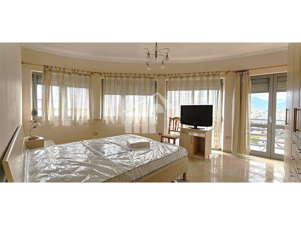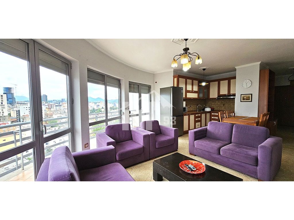 Apartament me qira 2+1 me sipërfaqe 110 m2, kati i 13-te, me orientimin lindje. Është i përbërë nga dhoma e ndenjes, ngrënie dhe kuzhinë, 2 dhoma gjumi, 2 tualete, ballkon i madh dhe korridori. Dritaret janë dopio xham me grila. Është komplet i mobiluar me pajisje cilësore dhe me ajër të kondicionuar. Pamje shume e bukur nga ana e Tiranes.