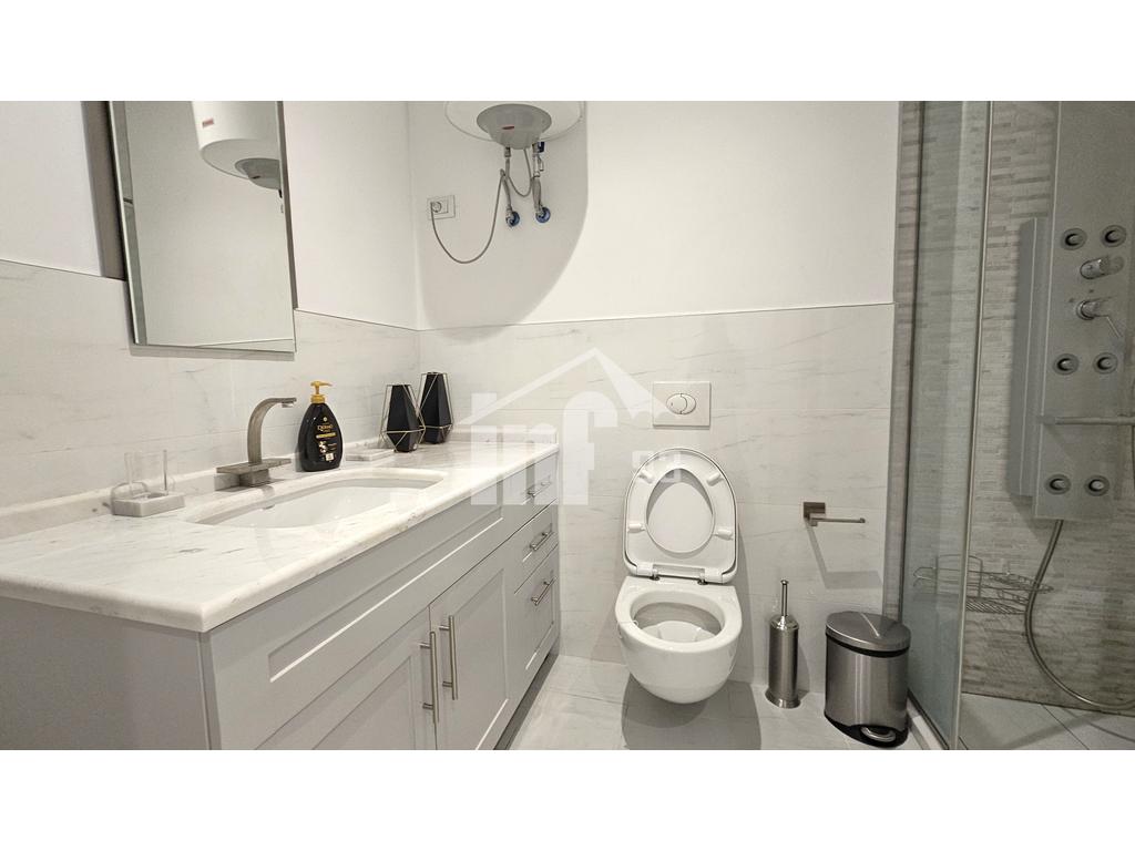 Apartamenti është me rifinitura shumë cilësore, mobilim me cilësi të lartë. I pajisur me sistem qendror kondicionimi për ngrohje-ftohje, të gjitha ambientet të shtruara me parket cilësor, kuzhinë moderne, pajisjet hidrosanitare të një cilësie shumë të lartë etj.