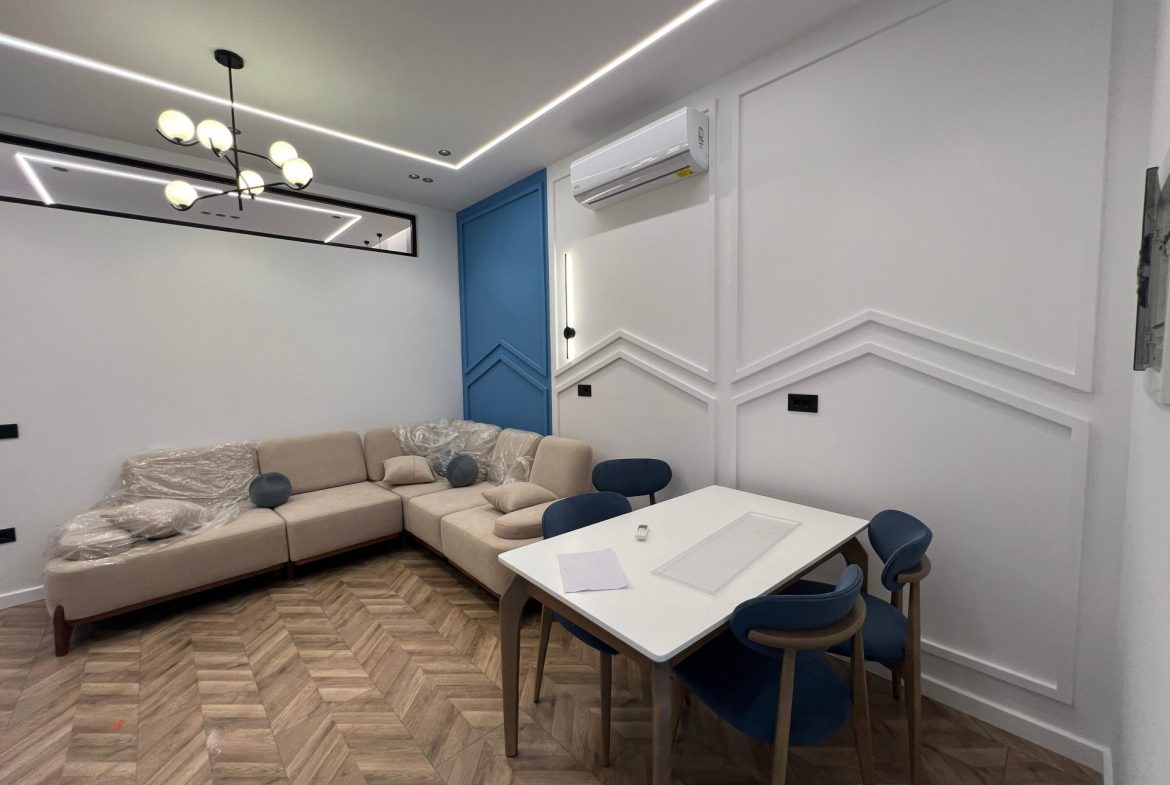 Jepet me qira apartament 2+1, i pozicionuar në një nga rezidencat më të qeta dhe të kërkuara të Tiranës – te Kodra e Diellit. Ndodhet në katin 0 të një ndërtese të re me ashensor dhe ofron kushte shumë të mira jetese. Apartamenti është tërësisht i mobiluar me stil modern, i pajisur me 3 kondicionerë për komoditet maksimal gjatë gjithë vitit. Ka një organizim funksional me dy dhoma gjumi, ambient ndenje dhe gatim dhe një tualet dhe ndricim natyral. Zona në të cilën ndodhet apartamenti është një zonë e qetë dhe e sigurt.