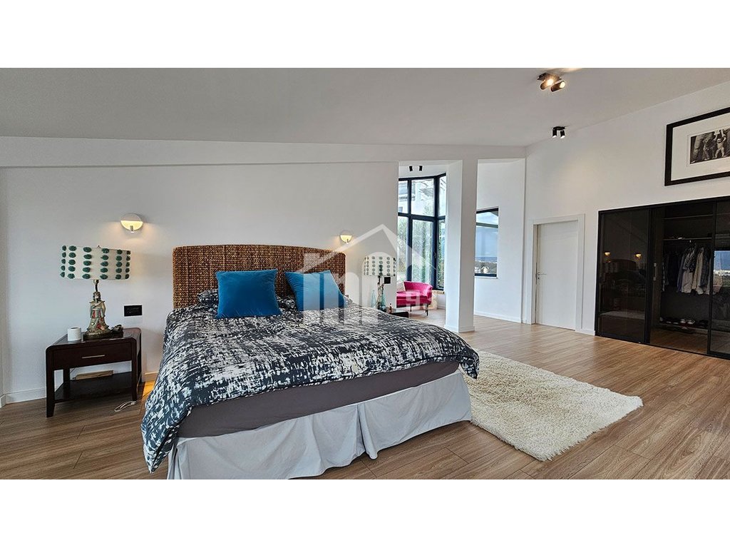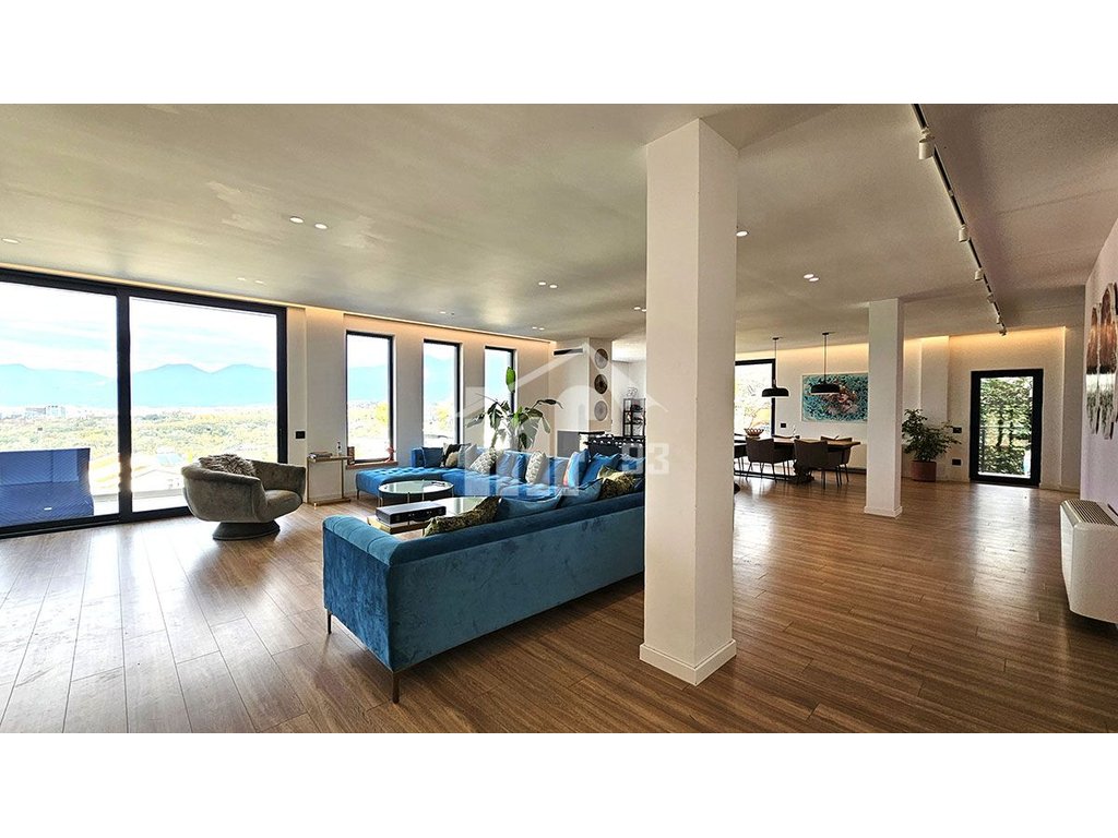 Vile 4 katshe + bodrum, me qira me siperfaqe totale ndertimi 900 m2 + 1200 m2 siperfaqe toke. Në katin -1 vila organizohet nga 2 poste parkimi, ambient teknik, lavanderi dhe pjesa tjeter e hapesires qe mund te perdoret per palester, dhome lojrash per femije etj. Bodrumi ka ajrim dhe ndricim natyral teresisht. Kati perdhe është i organizuar nga dhoma e ndenjes, kuzhine + ngrenie, 2 dhoma gjumi + tualetet perkatese, 1 tualet dite. Kati I pare organizohet nga sallon i madh ne te cilin ndodhet dhe nje oxhak funksional me dru, dy dhoma gjumi + tualetet perkatese, tualet dite. Ne katin e dyte ndodhet nje dhome matrimoniale + garderobe + tualeti me vaske te integruar, nje ambient per zyre dhe dhome gjumi me tualet brenda dhe veranda e cila ofron pamje fantastike nga Liqeni i Tiranes. Te treja katet kane ballkone dhe veranda relaksuese me pamje drejt qytetit.