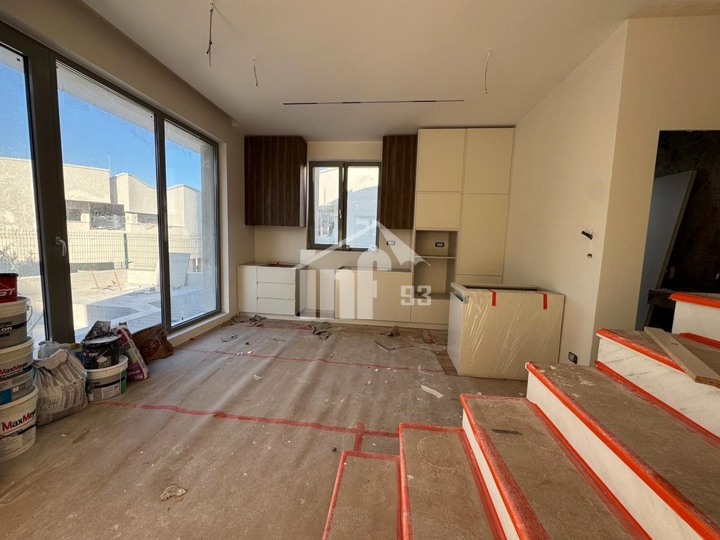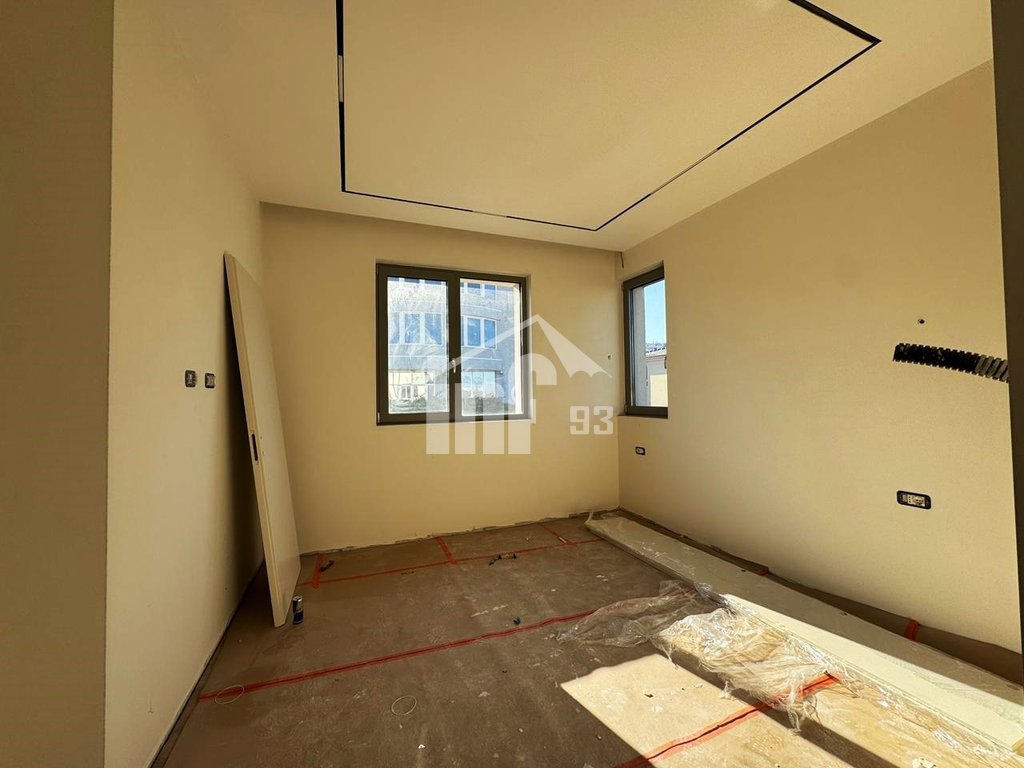 Vilë me qira 2 katshe + bodrum, me sipërfaqe ndërtimi 185 m2 + sipërfaqe toke 100 m2 + pishinë. Vila me arkitekturë moderne ofron këto ambiente: kati nëntokë përbëhet nga dy ambiente qe mund të përdoren sipas dëshirës dhe dhomë teknike. Kati përdhe ka dhomë ndenje me dalje në oborr dhe tavolinë ngrënie, ambient gatimi të veçuar me dritare, një dhomë që mund të përdoret për studio ose dhomë gjumi, tualet dhe verandë. Kati i parë ka 1 dhomë matrimoniale me garderobë dhe tualet, 1 dhomë për miqtë me tualet dhe 1 dhomë fëmijësh me tualet brenda.