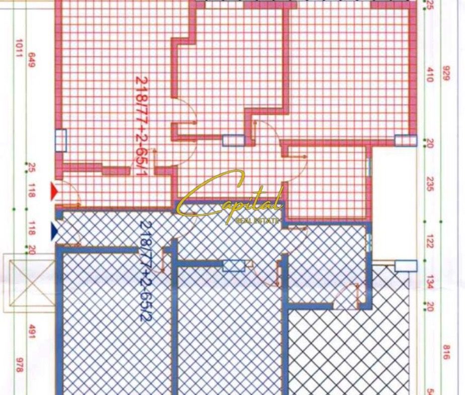 * Organizimi: 2 dhoma gjumi, sallon, kuzhinë, tualet, korridor shpërndarës, ballkon