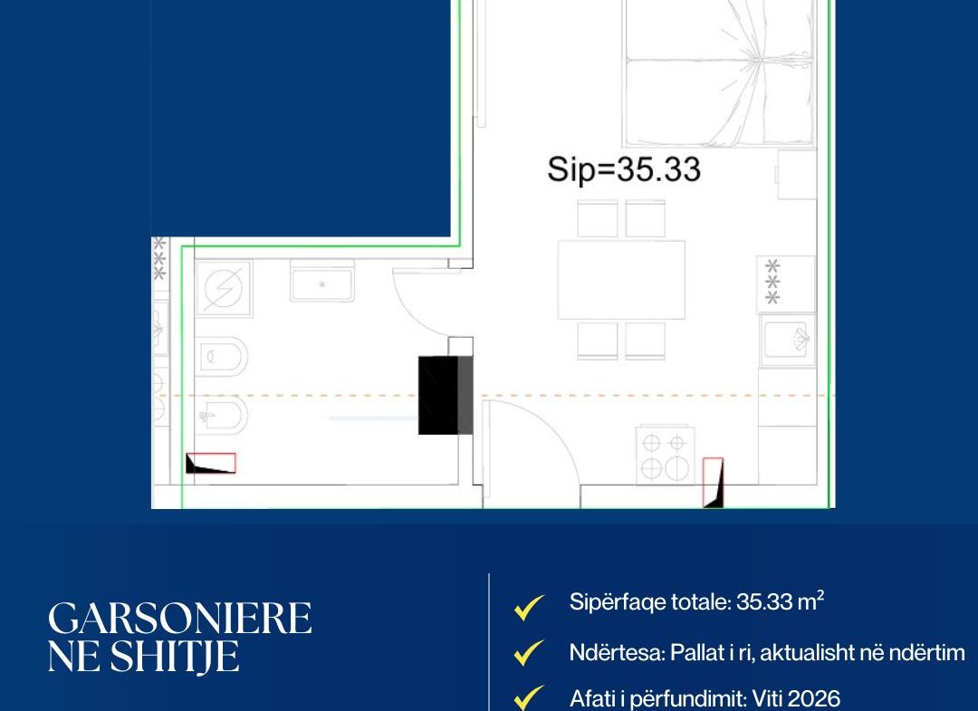 Po kërkoni një mundësi të mirë investimi ose një hapësirë të përshtatshme për banim në një godinë të re? Kjo garsoniere është zgjedhja e duhur për ju!