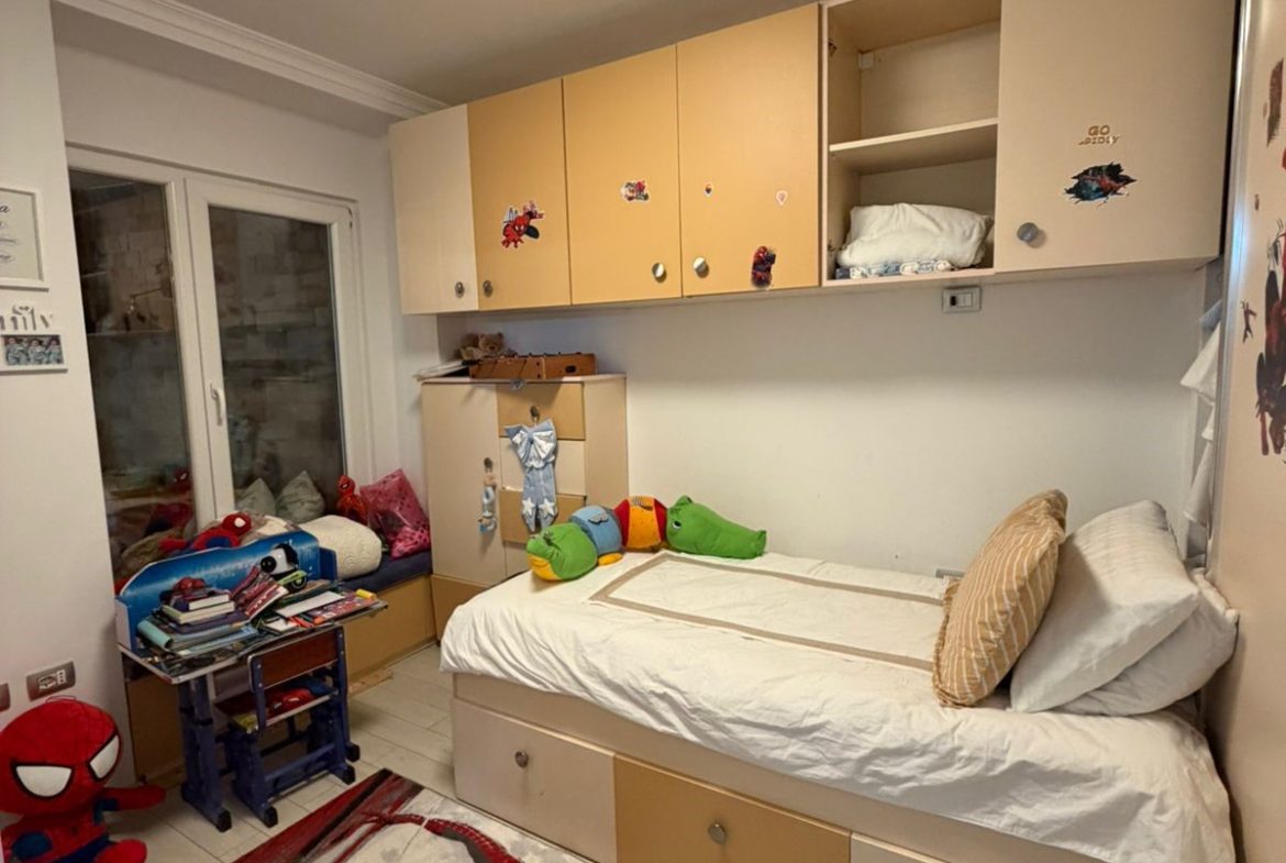 – 2 dhoma gjumi (1 matrimoniale + 1 për fëmijë)