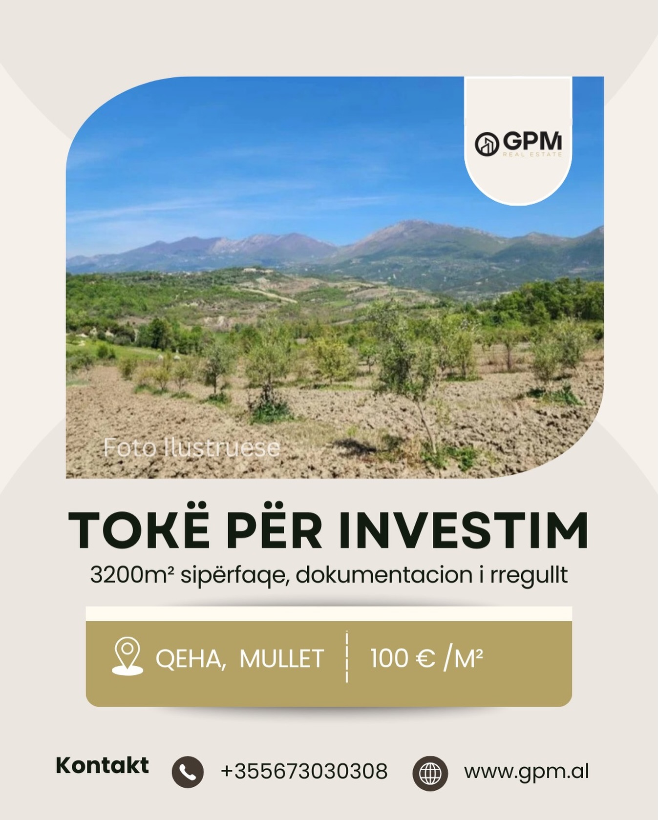 Në një zonë gjithnjë e më të kërkuar për zhvillime rezidenciale dhe projekte me vizion, ofrohet për shitje tokë me sipërfaqe 3200 m², me dokumentacion të rregullt dhe akses të shpejtë në autostradën Tiranë–Elbasan.